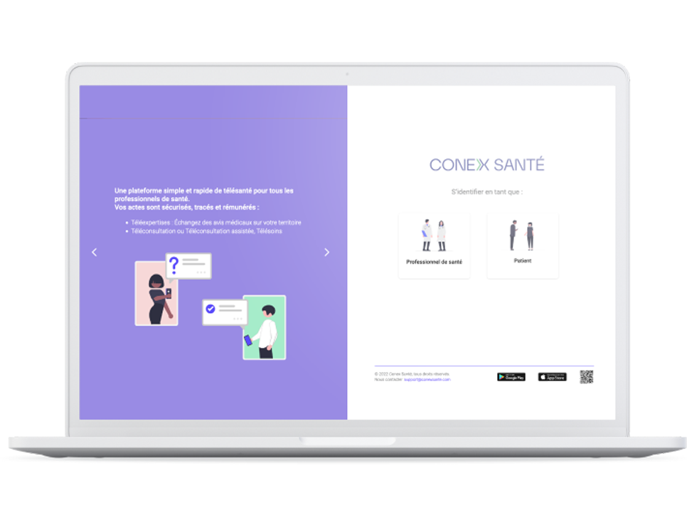 Conex Santé vous permet d'accéder sur mobile ou ordinateur aux services de téléexpertise, téléconsultation assistée et télésoins, et ce, de façon sécurisée sur une seule application.